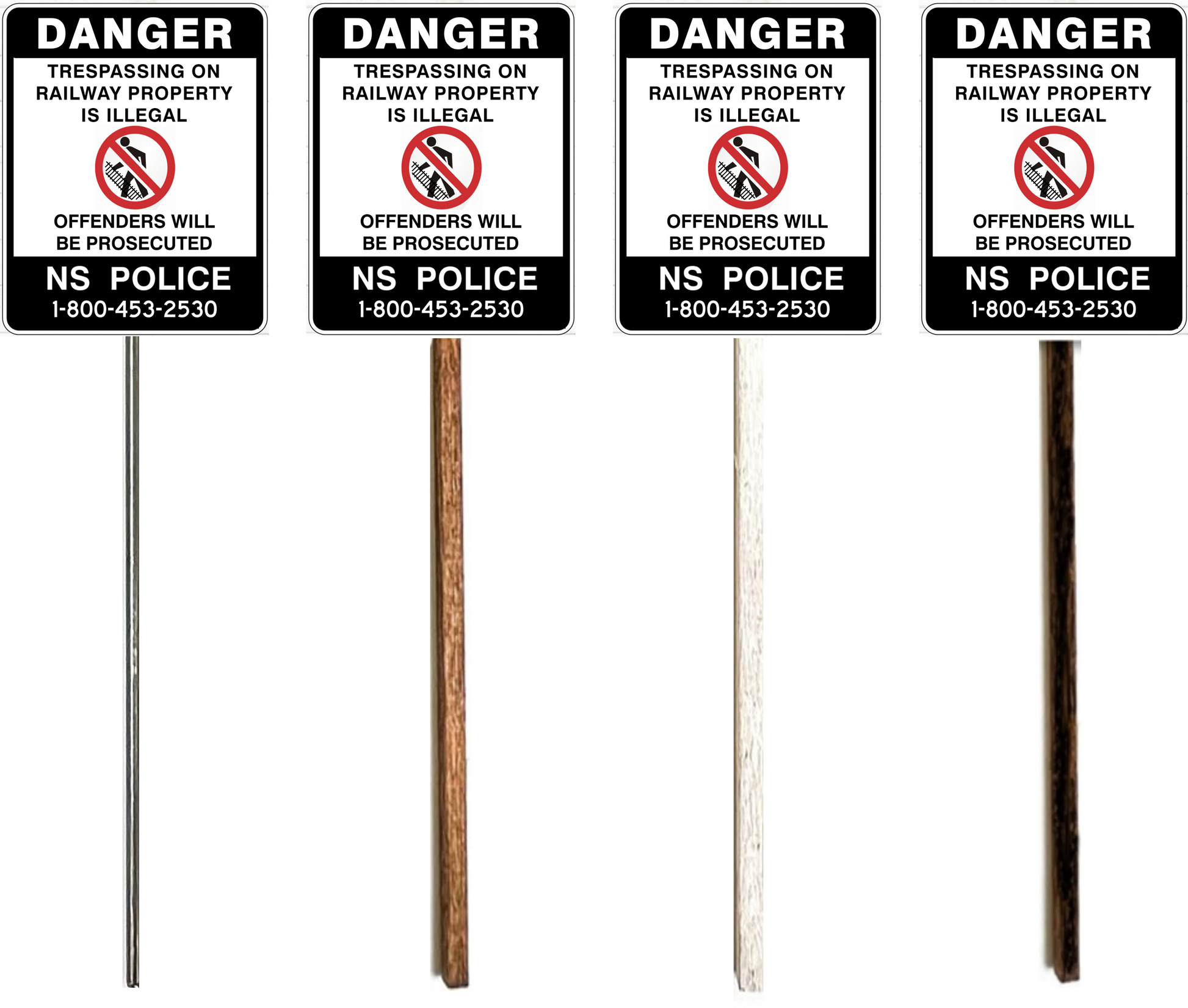 Add extra realism to your layout with this set of four Norfolk Southern–style warning signs. Each sign displays “Danger – No Trespassing” and is available with your choice of post style for the perfect scene match.