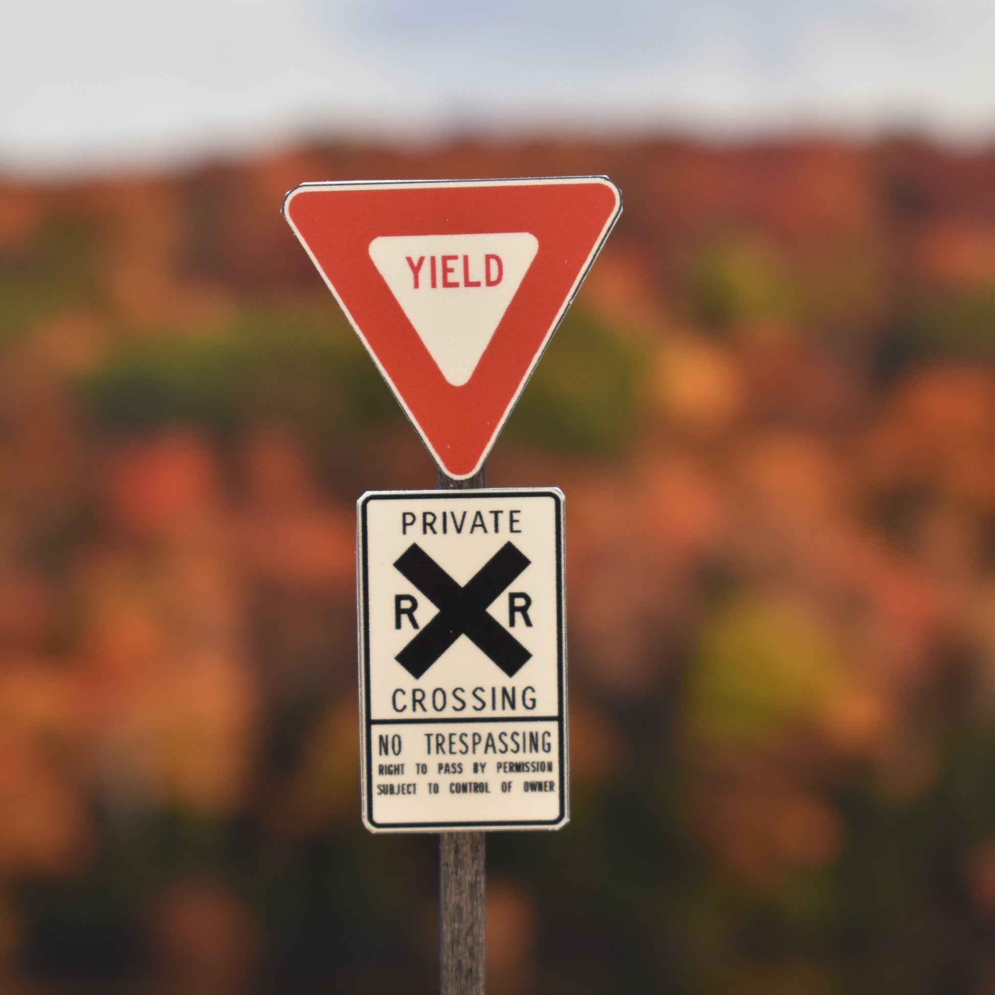 Includes a realistic railroad crossing crossbuck with attached YIELD sign